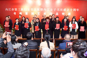 1月15―16日,四川省女書(shu) 法家聯盟2011年迎春聯誼會(hui) 在眉山市舉(ju) 行。原中紀委副秘書(shu) 長、四海畫院院長李任仕、著名藝術評論家馬安信、著名書(shu) 法家謝季筠、眉山市政協副主席宋思彬與(yu) 來自全省各地、市、州的20多位女書(shu) 法家歡聚一堂,共迎新春。