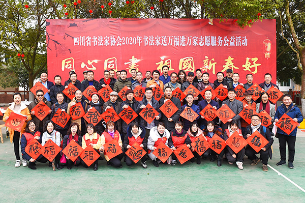 現場書(shu) 寫(xie) 近600套春聯和“福”字,同時發放中國書(shu) 協印製的張海、蘇士澍、孫曉雲(yun) 三位主席書(shu) 寫(xie) 的春聯100套,向和盛鎮村民致以乙巳蛇年新春的祝福。