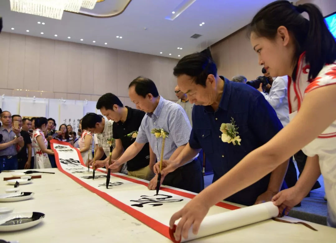 開展儀(yi) 式上,戴躍、何開鑫、王七章、陳榮仲、餘(yu) 斌、鍾顯金、黃澤江、劉健、龔小臏、冷柏青、王書(shu) 峰、楊江帆等書(shu) 法名家還同台揮毫,在長卷上現場書(shu) 寫(xie) 了“雅”字,留下了難得的墨寶。
