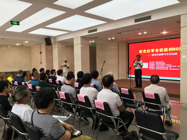 為(wei) 紀念紅軍(jun) 長征勝利80周年,激勵當代民眾(zhong) 繼承優(you) 良革命傳(chuan) 統、開創美好未來,7月28日,由四川省文化廳主辦、四川省詩書(shu) 畫院承辦的“紀念紅軍(jun) 長征勝利80周年――重走長征路寫(xie) 生作品展”在四川中國書(shu) 畫美術館開展。原四川省政協主席、四川省詩書(shu) 畫院院長秦玉琴,四川省文化廳藝術委員會(hui) 主任、四川省詩書(shu) 畫院副院長胡繼先,四川省美協常務副主席、四川省美術館館長梁時民,原四川省美協秘書(shu) 長、四川省文史館館員王明月,四川大學藝術學院院長黃宗賢,成都畫院副院長李青稞,四川省詩書(shu) 畫院副院長管苠��,四川省詩書(shu) 畫院秘書(shu) 長劉曉英,四川省書(shu) 法家協會(hui) 副主席何開鑫,四川省詩書(shu) 畫院藝術家羅智慧、張劍、王申勇、王道義(yi) 、冷柏青、鄧楓、劉浪濤、錢磊、劉剛等及來自各地的書(shu) 畫家作者200餘(yu) 人參加了開幕式。