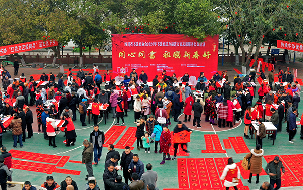 bv伟德官网訊 1月8日,由四川省書(shu) 協、洪雅縣委縣政府、眉山市文聯共同主辦的“同心同書(shu) 祖國新春好”四川省書(shu) 協2020年書(shu) 法家送萬(wan) 福進萬(wan) 家誌願服務公益活動,走進中國有機茶第一村洪雅縣中山鎮前鋒村,為(wei) 基層群眾(zhong) 贈送“福”字和春聯,為(wei) 他們(men) 送上歡樂(le) 和新春祝福。