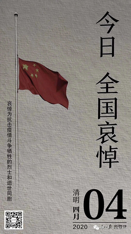 為(wei) 表達全國各族人民對抗擊新冠肺炎疫情鬥爭(zheng) 犧牲烈士和逝世同胞的深切悼念,2020年4月4日舉(ju) 行全國性悼念活動。在此期間,全國和駐外使領館下半旗誌哀,全國停止公共娛樂(le) 活動。10時起,全國人民默哀3分鍾,汽車、火車、艦船鳴笛,防空警報鳴響。
