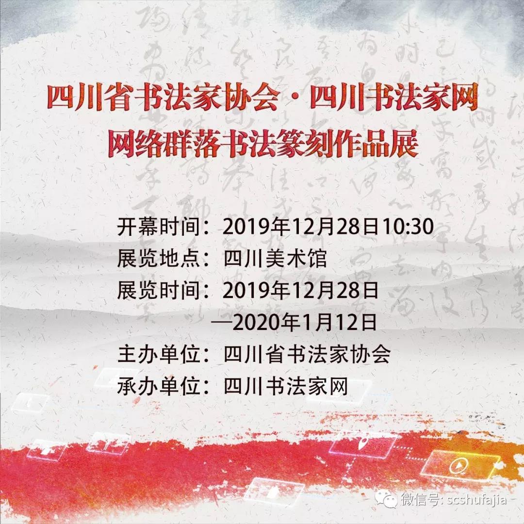 通知:由四川省書(shu) 法家協會(hui) 主辦的“四川省書(shu) 法家協會(hui) •bv伟德官网網絡群落書(shu) 法篆刻作品展”將於(yu) 12月28日上午10時30分在四川美術館開展。請優(you) 秀及入展作者準時參加開幕式並領取證書(shu) 和作品集。