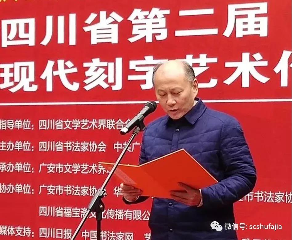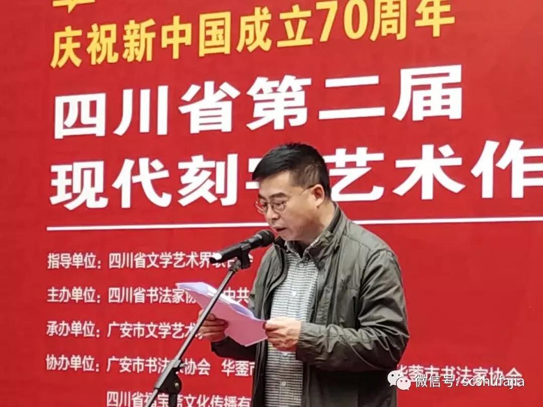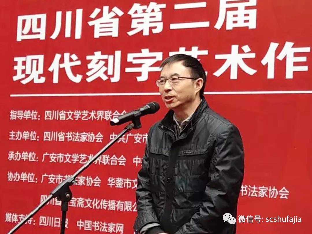 廣安市文聯主席童光輝代表主辦單位中共廣安市委宣傳(chuan) 部、承辦單位廣安市文聯致辭。他感謝省文聯、省書(shu) 法家協會(hui) 的厚愛與(yu) 信任,指定廣安市文聯為(wei) 本次展覽的承辦單位。他說,方寸之地盡顯漢字之魅,一刀一錘成就別樣藝術。刻字藝術家們(men) 堅守文化自信、紮根人民群眾(zhong) 、牢守初心始終,運用書(shu) 法、繪畫、雕刻等手段,揮毫潑墨、以刀為(wei) 筆、力透秀木,去謳歌祖國、謳歌人民、謳歌生活,奉獻出了高品質的刻字作品,呈現了漢字的美輪美奐,充分展示了四川刻字藝術在全國遙遙領先的水平!