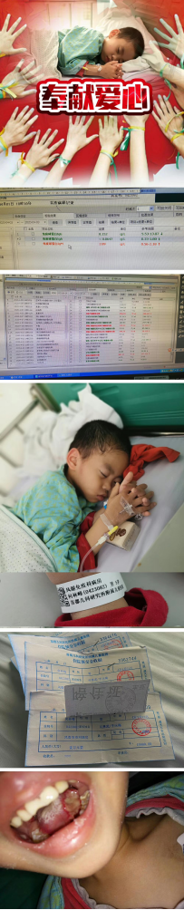 阿峰症狀是口腔裏多處潰瘍、舌側(ce) 缺損,咽喉部位潰瘍、直腸潰瘍,持續發燒已20餘(yu) 天。目前醫院治療方案為(wei) 首先控製感染炎症,不發燒,然後免疫製劑治療,配型等,最後考慮骨髓移植。現在每天使用高級抗生素,一天輸4次液,治療費用在3千左右。直到4月20日治療費用已達到10多萬(wan) ,何燕武花光積蓄後,四處向親(qin) 友籌借治療費用,每日還要奔波於(yu) 醫院和家裏。