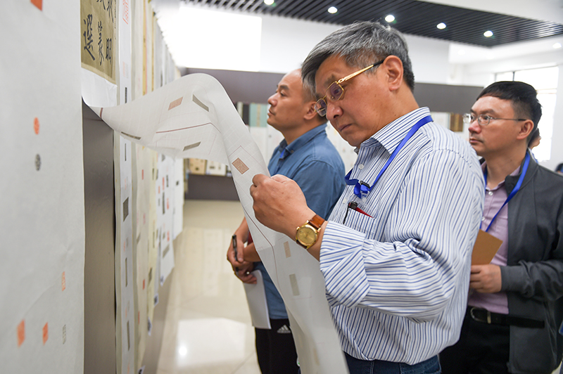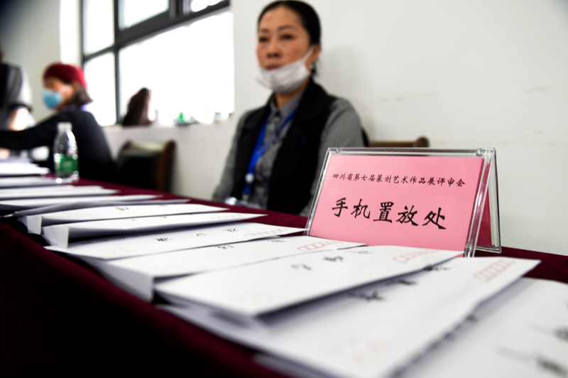 26日上午9時至下午18時,四川省第七屆篆刻藝術作品展評審工作在大千美術館有序開展。全體(ti) 評委和監審維權小組成員的手機交由工作人員統一保管。