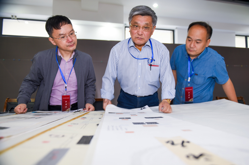 本環節要求作品在體(ti) 現藝術性的同時應當符合文字學、語言學的基本規範,符合曆代經典篆刻作品字法傳(chuan) 統,並將三者有機結合起來對每件作品進行評判。評委們(men) 認真審讀包括指定創作內(nei) 容“匯瀾有斐”、“花萼春暉” 、“遙看錦水帶金波” 、“始見文章入化工”在內(nei) 的全部作品的文本和字法,經集體(ti) 評議、查檢權威工具書(shu) ,對作品字法錯用誤用處認真做好現場記錄,經評委集體(ti) 複議後,評出156件作品進入複評。