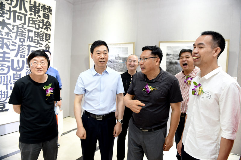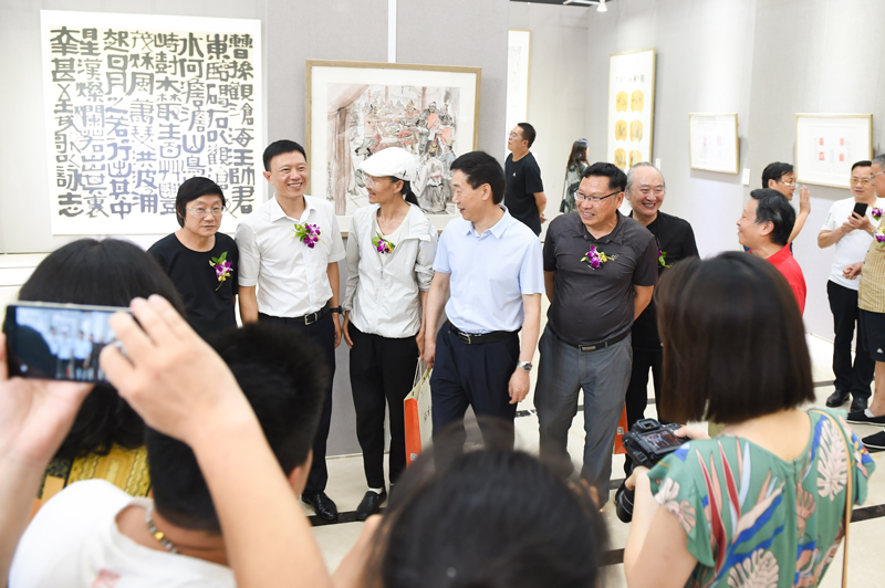 四川省人民政府文史研究館館長何天穀,四川省人民政府文史研究館藝術處處長伍文,四川省人民政府文史研究館藝術處薛晶,四川省美術家協會(hui) 主席梁時民,四川省美術家協會(hui) 副主席、成都市美術家協會(hui) 主席姚葉紅,四川省美術家協會(hui) 副主席、四川省詩書(shu) 畫院原副院長管苠棡,四川省美術家協會(hui) 人物畫會(hui) 秘書(shu) 長、新都畫院院長周平,四川藝術職業(ye) 大學藝術學院院長,四川省美術家協會(hui) 版畫藝術委員會(hui) 副主任,著名版畫家甘庭儉(jian) 等,成都市成華區委常委、宣傳(chuan) 部部長蔡達林,成華區宣傳(chuan) 部副部長、文學藝術界聯合會(hui) 主席郭仕文等,中共榮縣縣委副書(shu) 記、榮縣人民政府縣長鄭小清,中共榮縣縣委常委、宣傳(chuan) 部部長但海君等,成都杜甫草堂博物館館長劉洪,成都畫院書(shu) 記、副院長何紅英,成都美術館館長李暉,省書(shu) 協副秘書(shu) 長、省詩書(shu) 畫院專(zhuan) 職書(shu) 法家冷柏青,成都市美術家協會(hui) 副主席、詩書(shu) 畫院專(zhuan) 職畫家錢磊,成都大學副教授蔡育坤等各界代表和以及藝術家代表200餘(yu) 人參加開幕式。