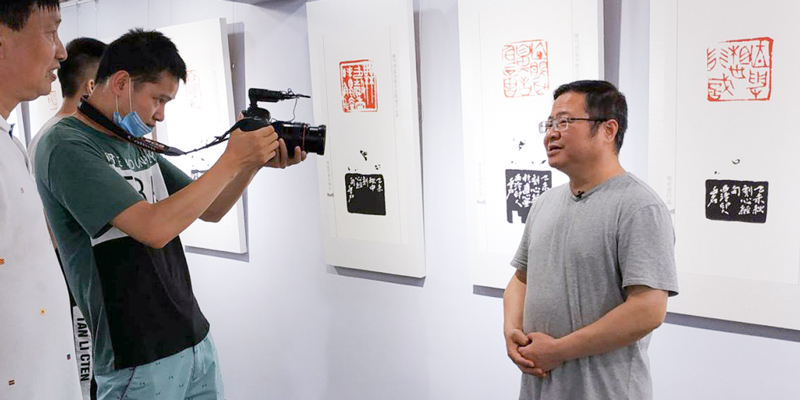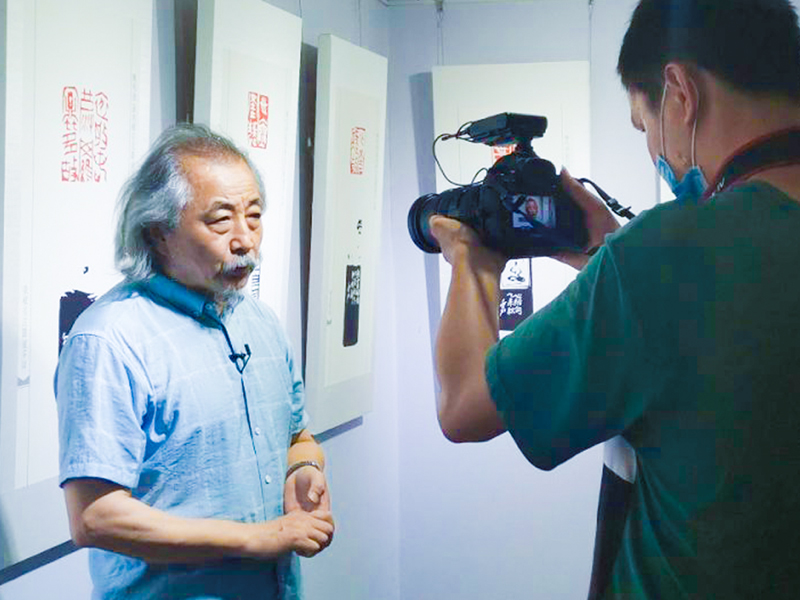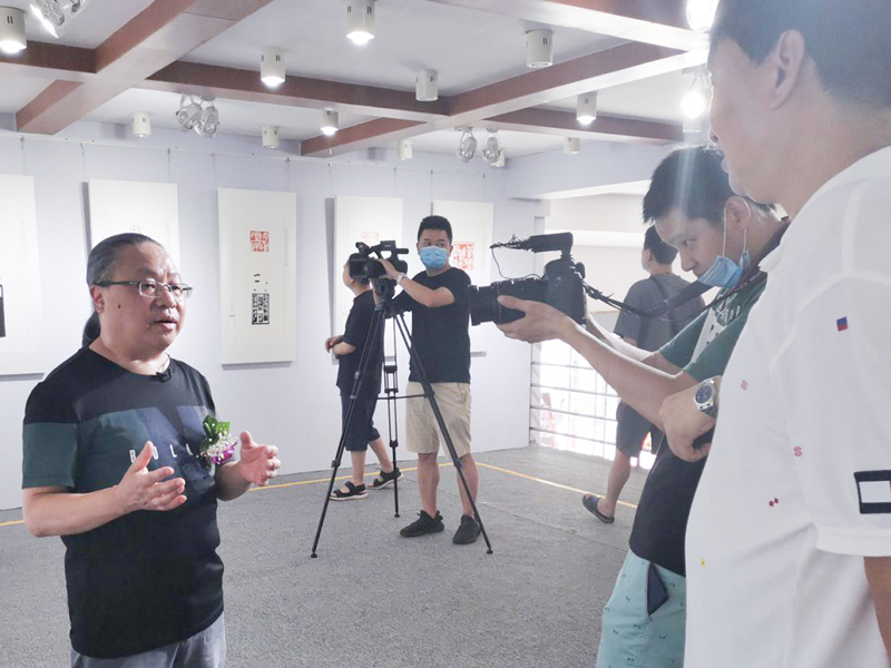 郭強在展覽現場接受采訪