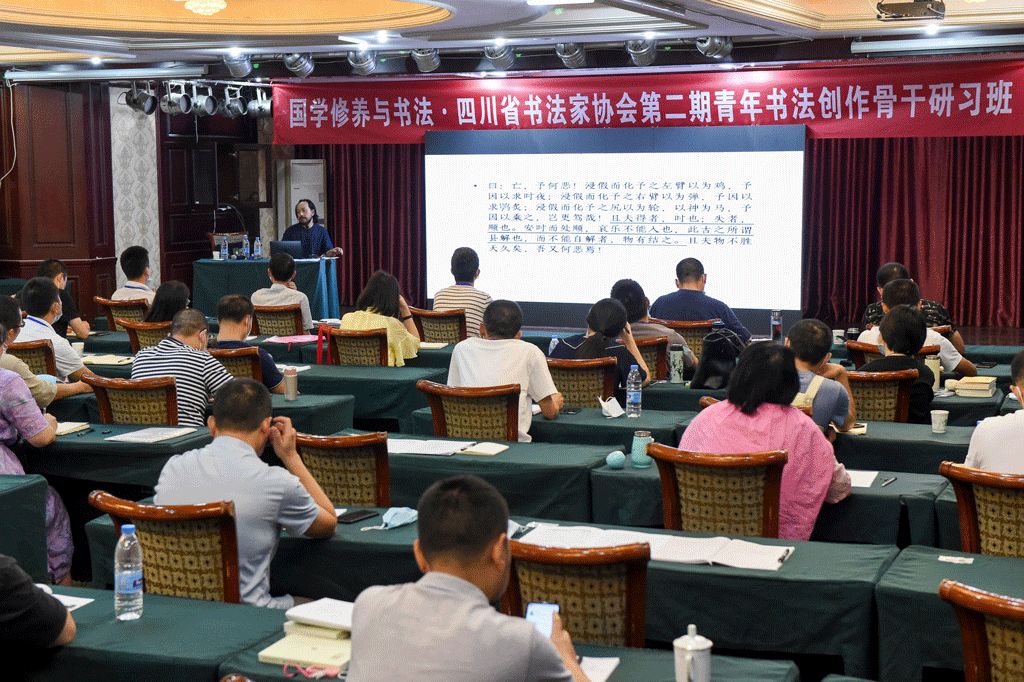 bv伟德官网訊 8月28日,在中共四川省委宣傳(chuan) 部、四川省文聯指導下,四川省書(shu) 法家協會(hui) 主辦的“國學修養(yang) 與(yu) 書(shu) 法·四川省書(shu) 法家協會(hui) 第二期青年書(shu) 法創作骨幹研習(xi) 班”教學進入第7天。四川大學曆史文化學院周鼎博士結束了近30小時的《〈論語〉導讀》和《道與(yu) 老莊》講座。
