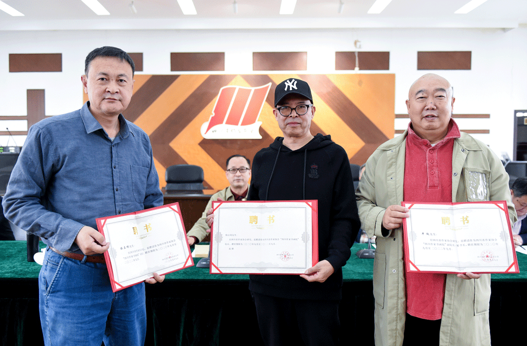 座談會(hui) 上,侯誌明為(wei) 首任院長楊宗鴻、副院長伍立楊和副院長兼秘書(shu) 長賈誌剛(牛放)頒發了聘書(shu) ,並為(wei) “四川作家書(shu) 畫院”揭牌。中國國家畫院書(shu) 法導師、四川省書(shu) 法家協會(hui) 副主席洪厚甜發表講話。首任院長、中國作協會(hui) 員、《星星詩詞》執行主編楊宗鴻在發言時表示,書(shu) 畫院每年將組織成員采風、辦展、出版作品集,把四川作家中的書(shu) 畫藝術家和書(shu) 畫愛好者緊緊團結在一起,為(wei) 中國書(shu) 畫藝術的弘揚傳(chuan) 承做出自己的貢獻。作家書(shu) 畫院的創作既要體(ti) 現獨特的文人氣息,也將要深耕傳(chuan) 統,向傳(chuan) 統學習(xi) ,加強基本功訓練,讓獨具魅力的文人書(shu) 畫綻放自己的光彩。首任副院長兼秘書(shu) 長、《四川文學》雜誌社黨(dang) 支部書(shu) 記賈誌剛(牛放)也在座談會(hui) 上作了表態發言。(駱駝 川網)