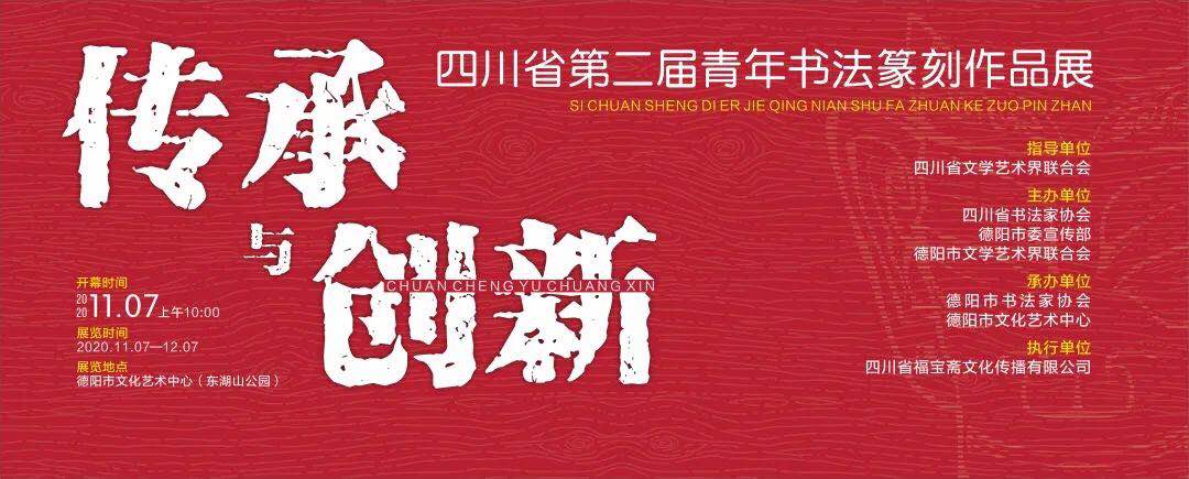 展訊預告:由四川省文學藝術界聯合會(hui) 指導,四川省書(shu) 法家協會(hui) 、德陽市委宣傳(chuan) 部、德陽市文學藝術界聯合會(hui) 主辦,德陽市書(shu) 法家協會(hui) 、德陽市文化藝術中心承辦的“傳(chuan) 承與(yu) 創新·四川省第二屆青年書(shu) 法篆刻作品展”將於(yu) 11月7日上午11點在德陽市文化藝術中心(東(dong) 湖山公園)舉(ju) 行隆重開幕儀(yi) 式。