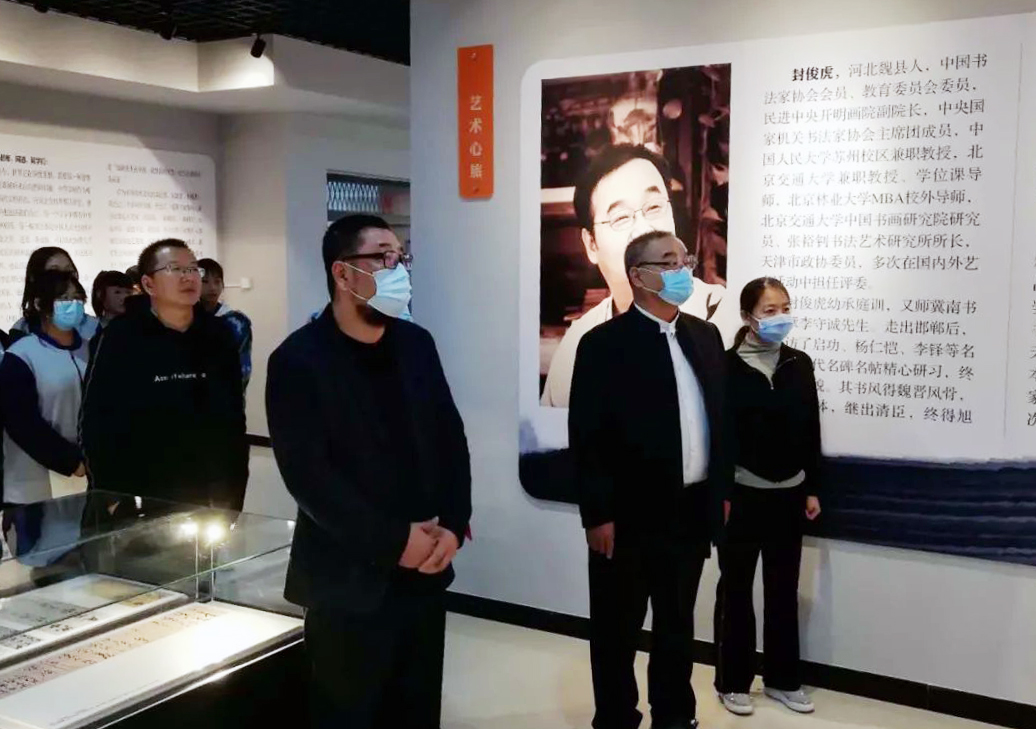 本次共展出封俊虎先生不同時期的佳作100餘(yu) 幅。展覽由中國書(shu) 法家協會(hui) 展覽中心、民進中央開明畫院、邯鄲市文化廣電和旅遊局主辦。魏縣人民政府、中國檢驗檢疫科學研究院、北京民進開明書(shu) 畫院、河北民進開明書(shu) 畫院、河北省磁州窯藝術館、封俊虎書(shu) 法公益研究教學基地協辦和邯鄲市博物館承辦的大型展覽。民進中央開明畫院副院長李學偉(wei) ,韓玉臣、柴宗潔、巨蘊龍、李喜泰、趙繼成等藝術家、學者、愛好者500餘(yu) 人出席開幕式,多家新聞媒體(ti) 報道了盛況。