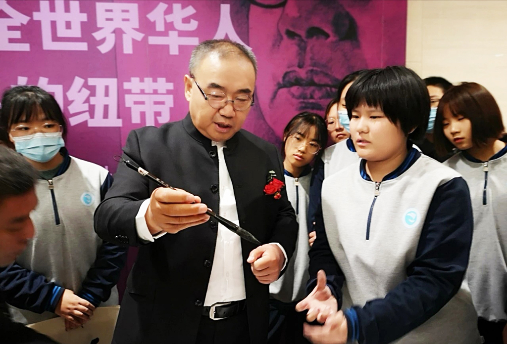 同日下午,封俊虎、李學偉(wei) 先生參觀封俊虎書(shu) 法公益研究教學基地,為(wei) 師生揮毫示範、舉(ju) 辦了書(shu) 畫講座。李學偉(wei) 先生受聘為(wei) 基地顧問。