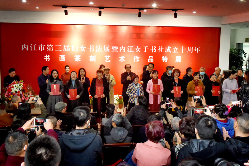 bv伟德官网訊 3月10日,正值全國“兩(liang) 會(hui) ”召開之時,在喜迎建黨(dang) 百年,慶祝“三八國際婦女節”之際,由內(nei) 江市婦女聯合會(hui) 、內(nei) 江市文廣旅局、內(nei) 江市文聯指導,內(nei) 江市書(shu) 法家協會(hui) 主辦、內(nei) 江女子書(shu) 社、內(nei) 江書(shu) 畫院、張大千美術館承辦的“巾幗翰墨靚彩,喜迎建黨(dang) 百年”——內(nei) 江市第三屆婦女書(shu) 法展暨內(nei) 江女子書(shu) 社成立十周年書(shu) 畫篆刻藝術作品特展在大千故裏張大千美術館隆重開幕。