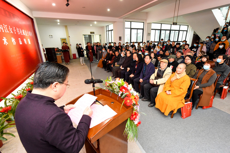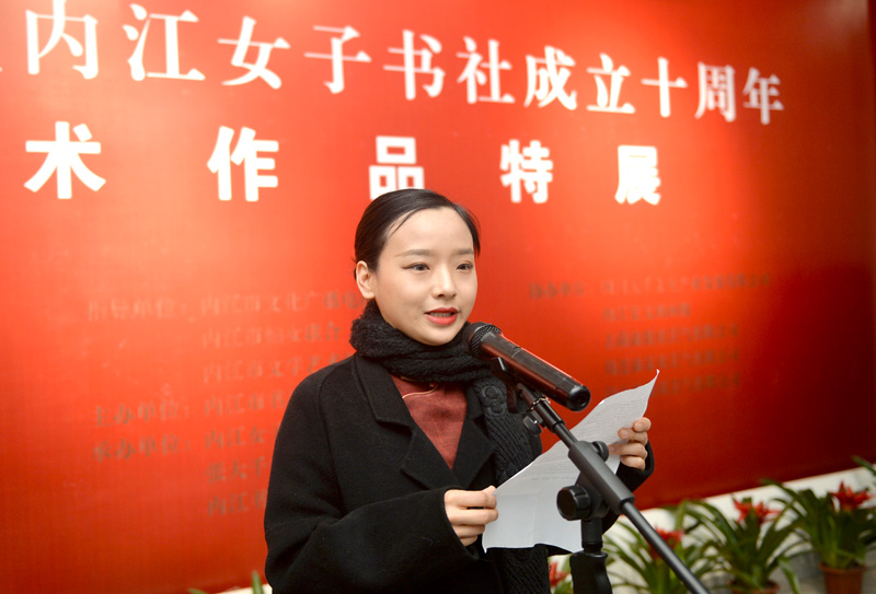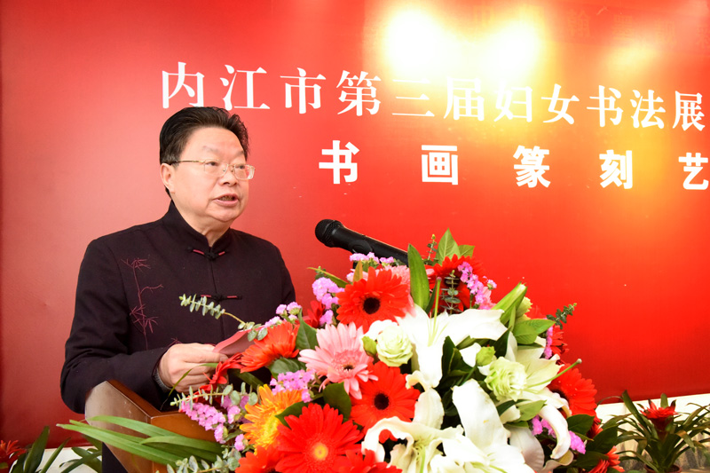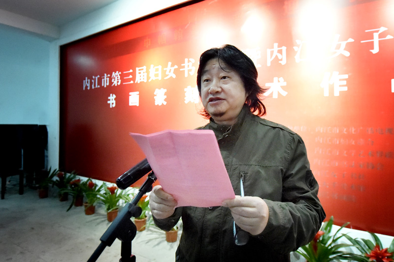 秦金保在致辭中表示,內(nei) 江古往今來,人傑地靈,人文薈萃,浸潤著深厚的曆史底蘊和豐(feng) 富的文化內(nei) 涵,薪火相傳(chuan) ,代不乏人。尤其是內(nei) 江強市文化戰略的推進實施,大千藝術精神的潛移黙化,大千故裏一批女性書(shu) 畫藝術家和愛好者,以靈巧秀麗(li) 、蕙心蘭(lan) 質交融到大千故裏這片藝術熱土之上,她們(men) 醉心翰墨,情迷紙筆,以丹青言誌,以翰墨抒情,匯成一幅春天詩畫,謳歌建黨(dang) 百年,謳歌新時代,不僅(jin) 豐(feng) 富了市民文化生活,也為(wei) 內(nei) 江文藝事業(ye) 的繁榮和發展增添了新生力量,為(wei) 這個(ge) 特別的春天,增添了新的人文生機,為(wei) 大千故裏藝壇吹來了一股清新之風。