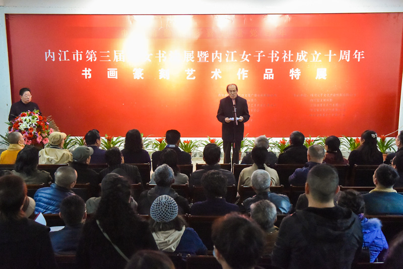 本淨在致辭中表示,我們(men) 生活在一個(ge) 繁榮的時代,更生活在一個(ge) 文化浸潤的內(nei) 江,肩負著為(wei) 時代而書(shu) 寫(xie) ,為(wei) 人民而歌的重任,更本能地承擔著傳(chuan) 承家風、相夫教子的義(yi) 務。她希望內(nei) 江女子書(shu) 社要力克前行中的團難,不忘初心,堅定文化自覺與(yu) 自信,團結廣大婦女書(shu) 畫愛好者,培根鑄魂,明德律己,守正創新,為(wei) 助力大千故裏文化藝術建設新發展貢獻力量。