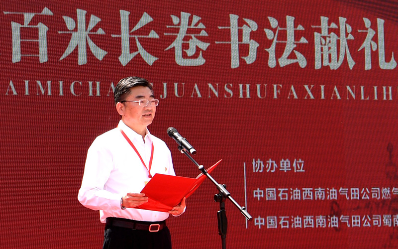中國石油西南油氣田公司黨(dang) 委常務副書(shu) 記、工會(hui) 主席趙厚川,中國書(shu) 法家協會(hui) 副主席、四川省文聯副主席、四川省書(shu) 法家協會(hui) 主席代躍,四川省社科聯理事、四川省經濟文化協會(hui) 會(hui) 長魏蓉生,四川省書(shu) 法家協會(hui) 、四川省經濟文化協會(hui) 、中國石油書(shu) 法家協會(hui) 、長慶油田書(shu) 法家協會(hui) 等共計一百名書(shu) 法家,西南油氣田公司相關(guan) 部門、單位負責人參加活動並出席啟動儀(yi) 式。