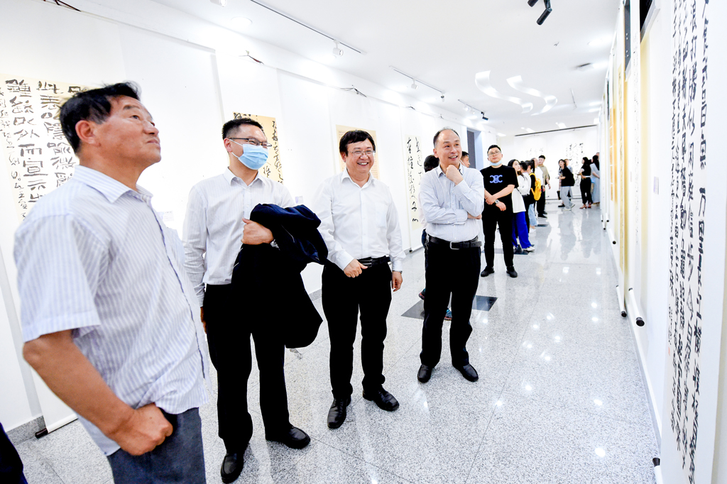 劉興(xing) 全表示,該校在書(shu) 法教學中以“植根傳(chuan) 統、多樣包容”為(wei) 指導,以“和合偕習(xi) ,自信自強”為(wei) 核心思想,通過“請進來,走出去”的研究學習(xi) ,戮力鑽研,勤奮練習(xi) 。書(shu) 法作品雖顯稚嫩,想借此展覽,請教方家,必有收獲。